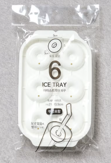 평범한 얼음은 이제 그만! 도넛 모양 아이스 트레이는 빨대가 쏙 들어가는 도넛 모양 얼음을 만들 수 있어요. 뚜껑이 있어 냉장고 냄새가 배지 않고, 가볍게 흔들어주면 얼음을 손쉽게 꺼낼 수 있어 홈카페 필수템입니다.